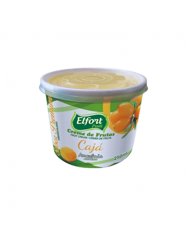 Aprecie o sabor tropical do creme de fruta cajá Elfort Fruit, 240ml, sem gordura hidrogenada e sem glúten. Produto tipo sorbet, ideal para sobremesas frescas e saudáveis. Feito com polpa concentrada e distribuído pela Burger Foods SC, diretamente de Manaus.